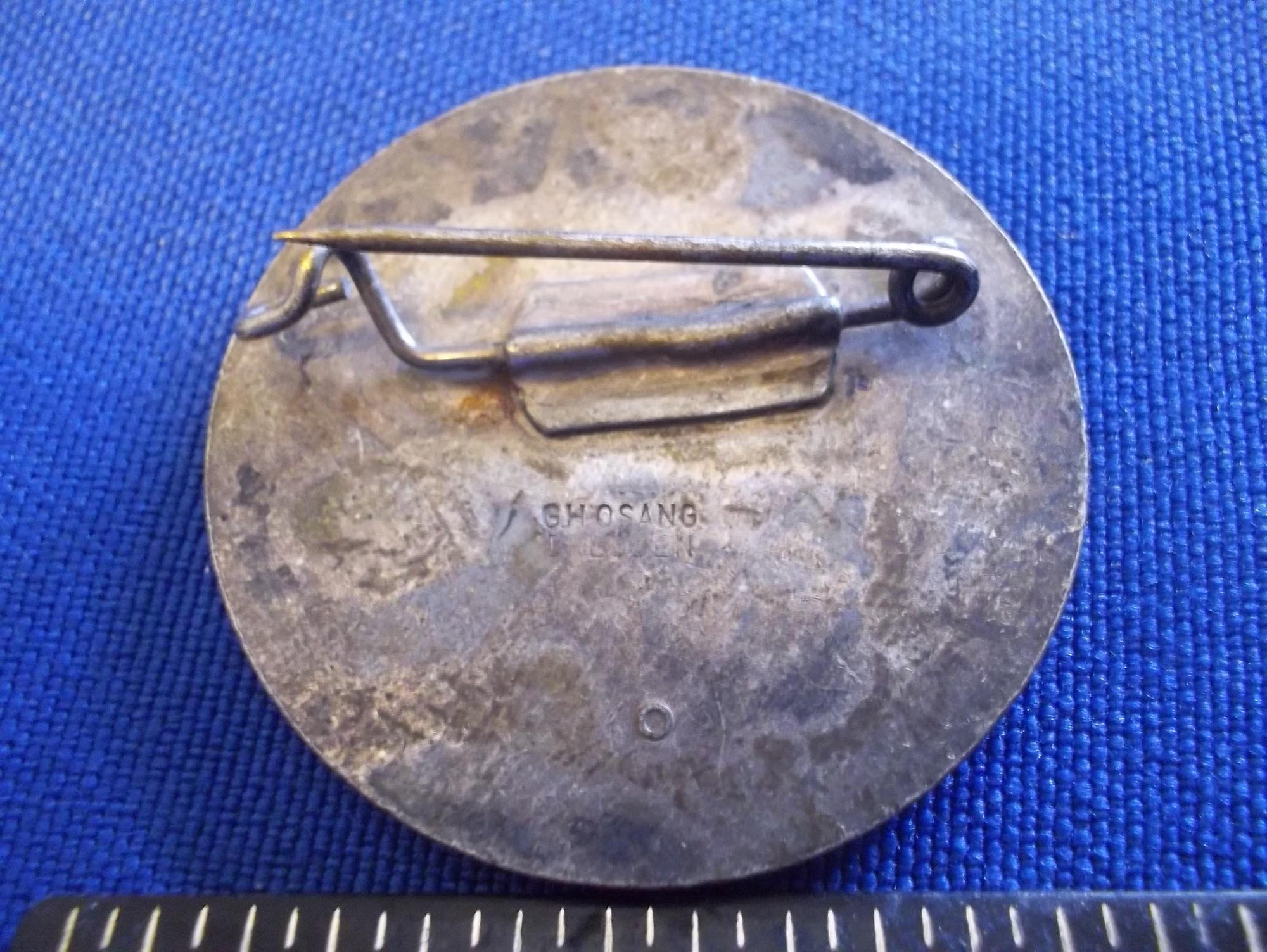 1936 Garmisch Partenkirchen Games Logo IV Olympische Winterspiele Round Pin With Colorful Olympic Rings Ice Mountain Blue Sky